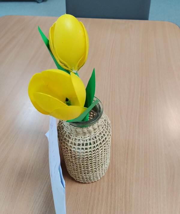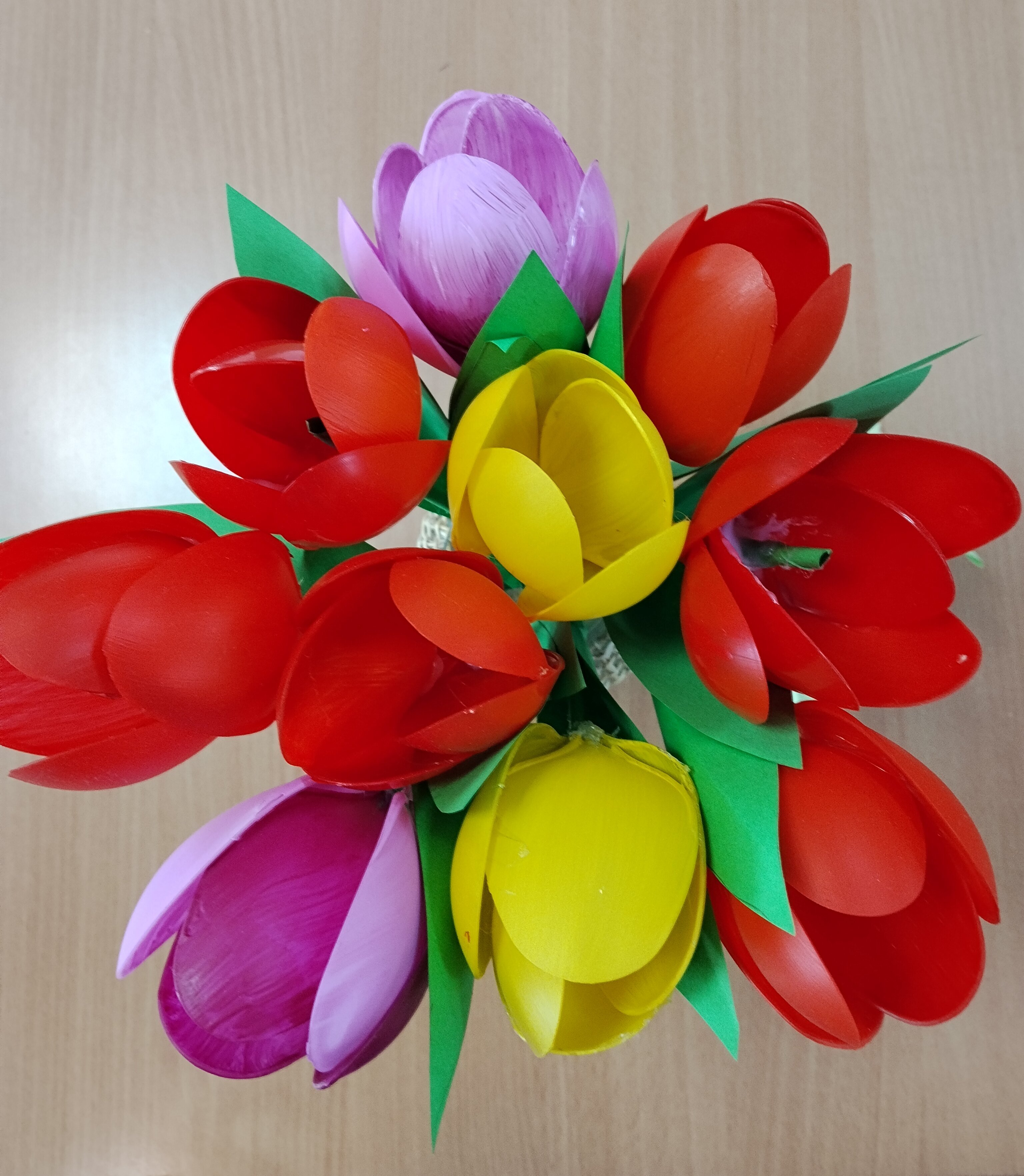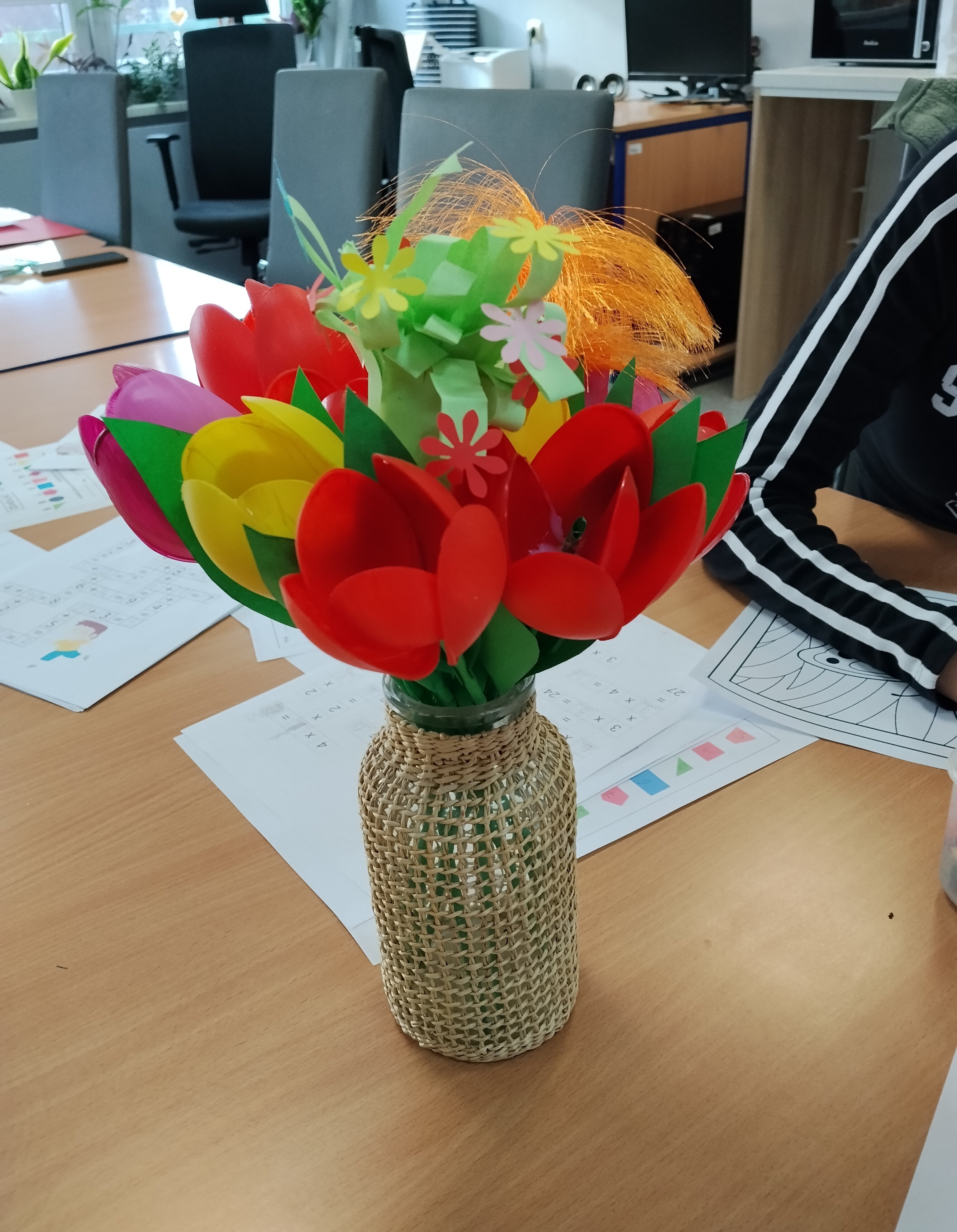 Dnia 5 marca dzieci ze świetlicy Różowe Okulary powitały już wiosnę, choć do kalendarzowej wiosny zostało jeszcze kilka tygodni. Na świetlicy pojawiły się piękne tulipany z... plastykowych łyżek. Mimo trudności w wykonaniu dzieciom spodobał się efekt.