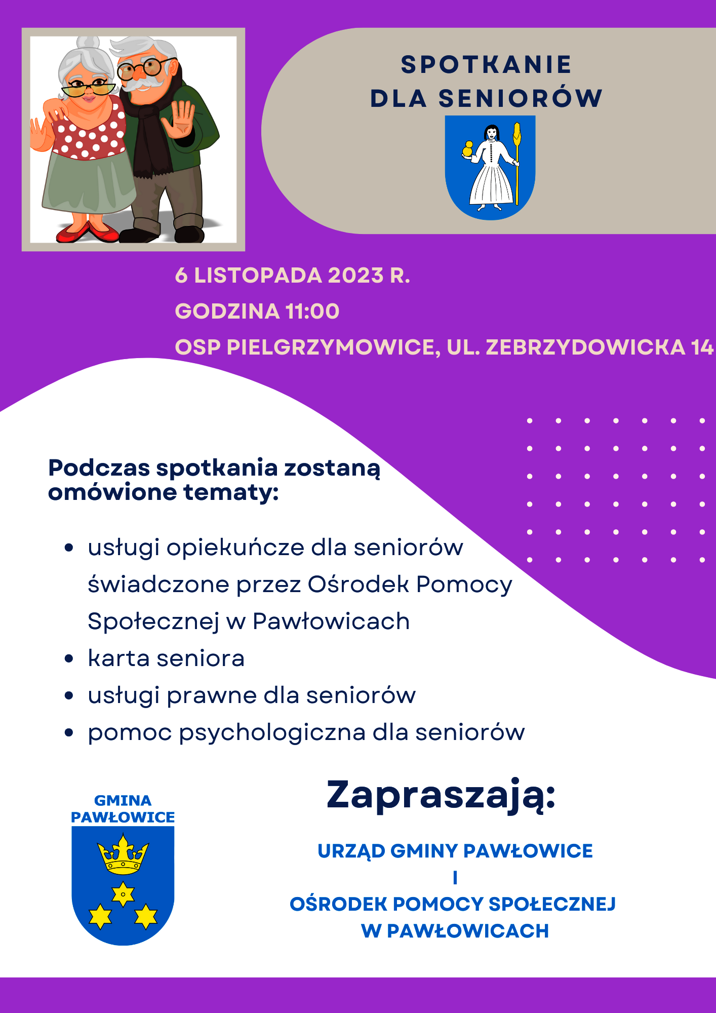 Najbliższe spotkanie odbędzie się w poniedziałek 6 listopada 2023 r., o godzinie 11:00 w OSP Pielgrzymowice, ul. Zebrzydowicka 14.