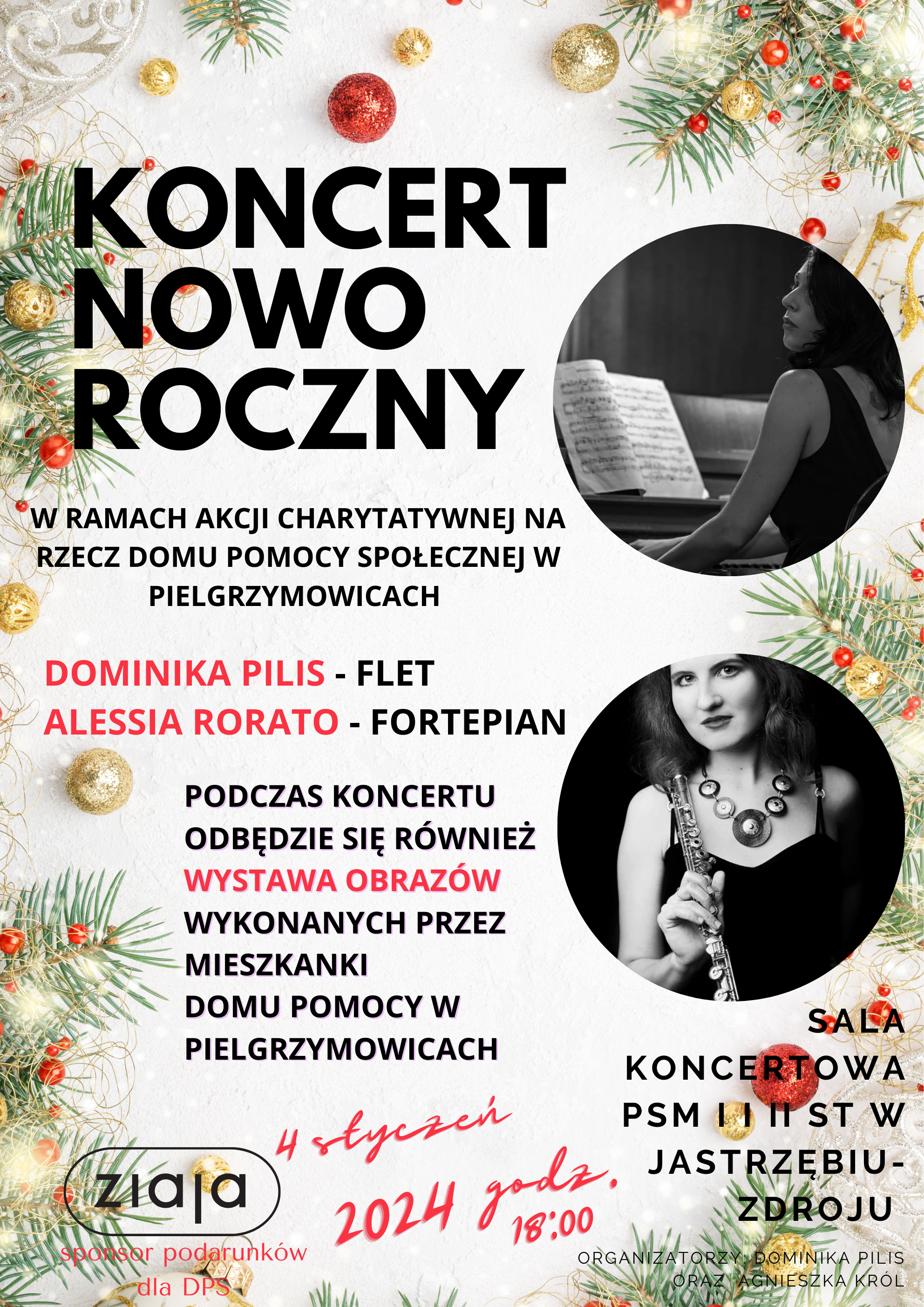 Organizatorkom zależy, by mieszkanki Domu Pomocy Społecznej, które na co dzień nie mają okazji samodzielnie uczestniczyć w wydarzeniach kulturalnych, dostały tę szansę i same poczuły się jak artystki, dlatego na malowaniu się nie skończy. Obrazy będzie można podziwiać 4 stycznia 2024 roku w patio Sali Koncertowej Państwowej Szkoły Muzycznej I i II st. im. prof. Józefa Świdra w Jastrzębiu-Zdroju. Wystawa będzie towarzyszyła wyjątkowemu Koncertowi Noworocznemu, na którym wystąpią flecistka Dominika Pilis i pianistka Alessia Rorato, znane pawłowickiej publiczności z październikowych koncertów w Pielgrzymowicach. Alessia na wydarzenie muzyczne przyleci prosto z Rzymu. Gośćmi honorowymi muzycznego wydarzenia będą mieszkanki DPS Pielgrzymowice a zarazem autorki prac plastycznych. Koncert ma charakter otwarty, dlatego mile widziani są wszyscy chętni.