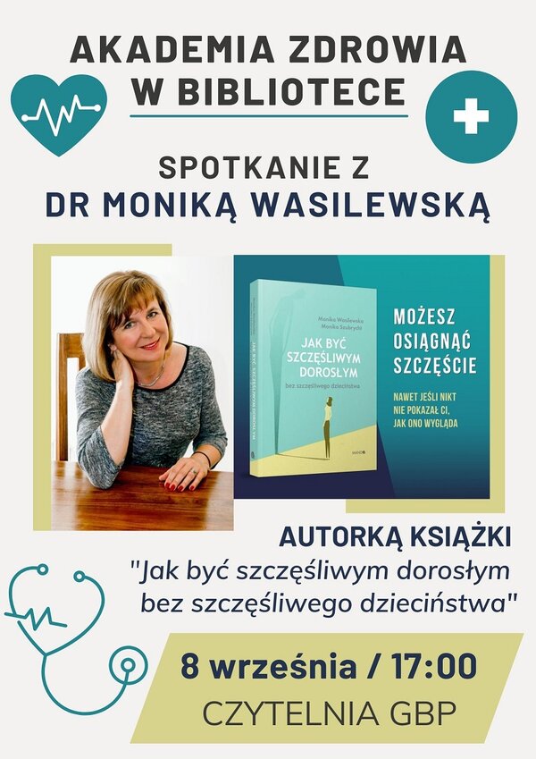 - 8 września 2022 r. godz. 17:00 - Jak być szczęśliwym dorosłym bez szczęśliwego dzieciństwa - spotkanie poprowadzi Dr Monika Wasilewska